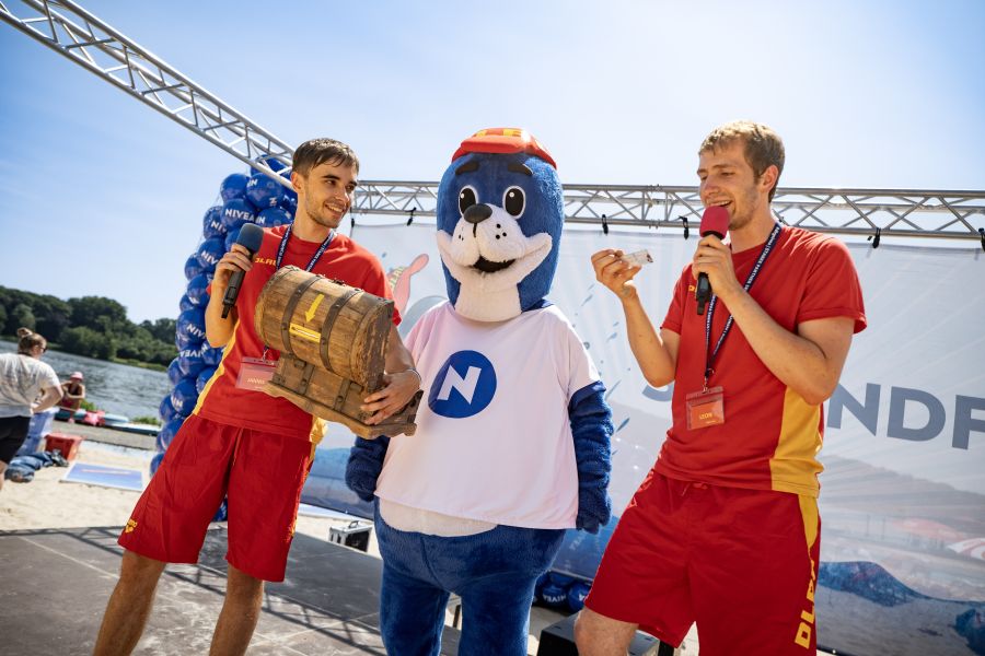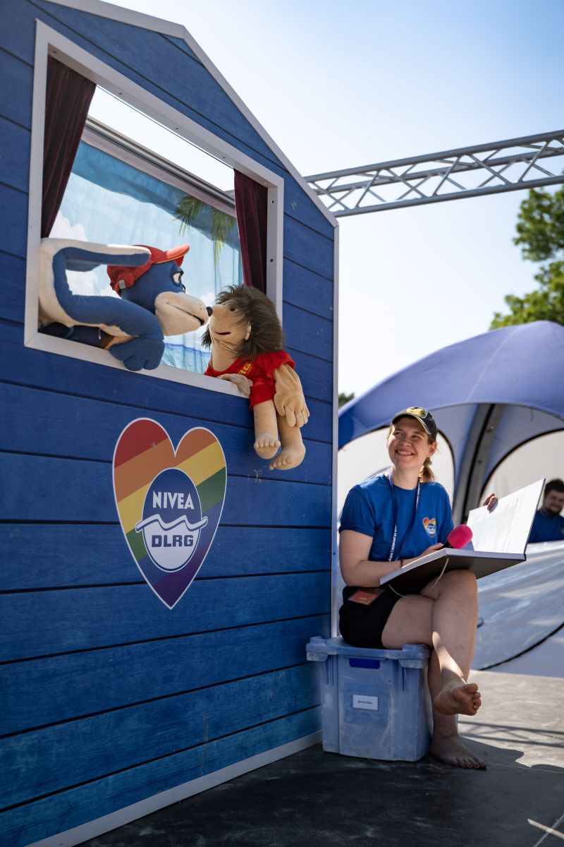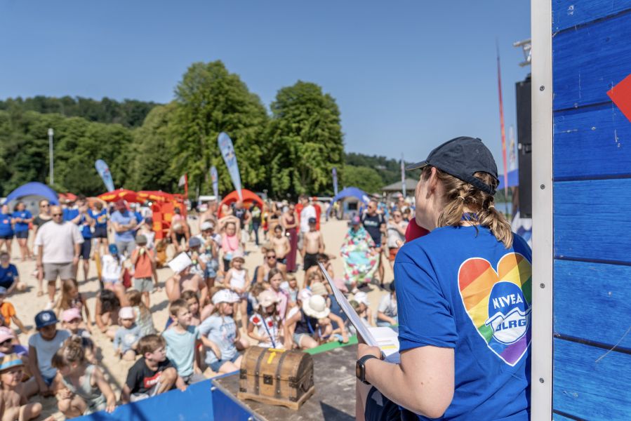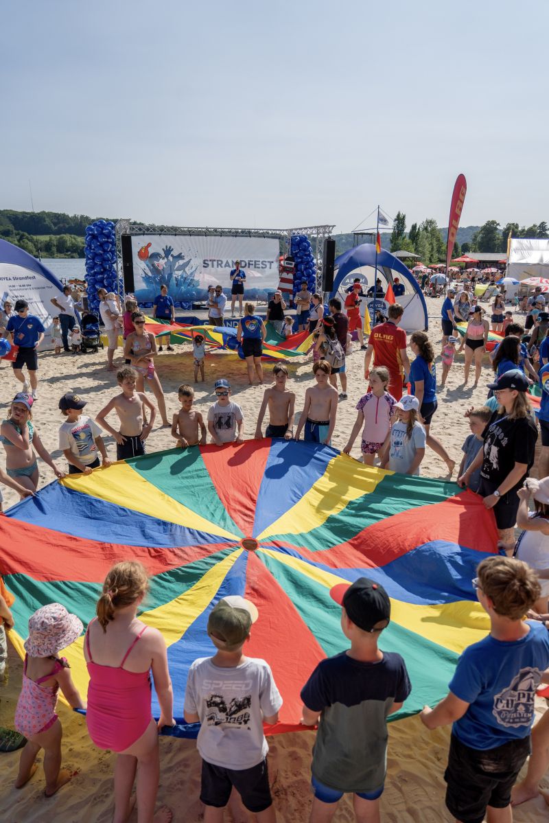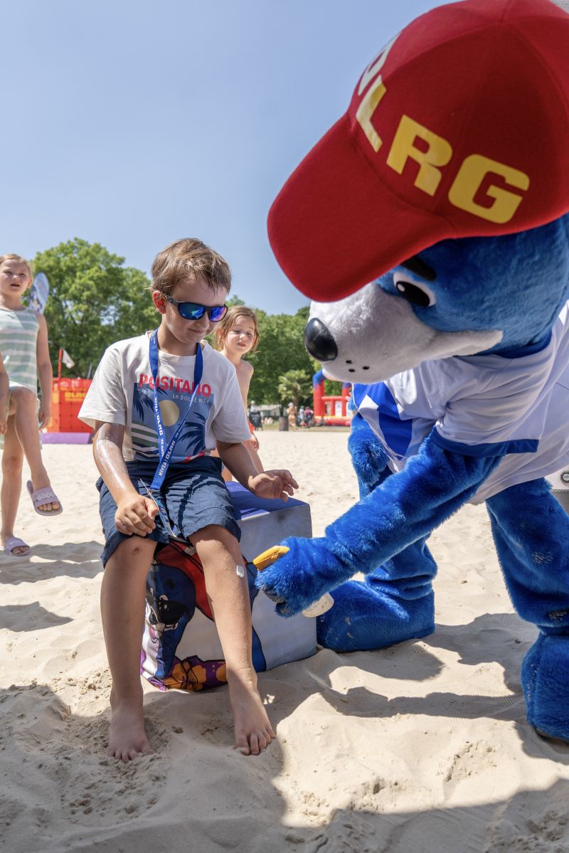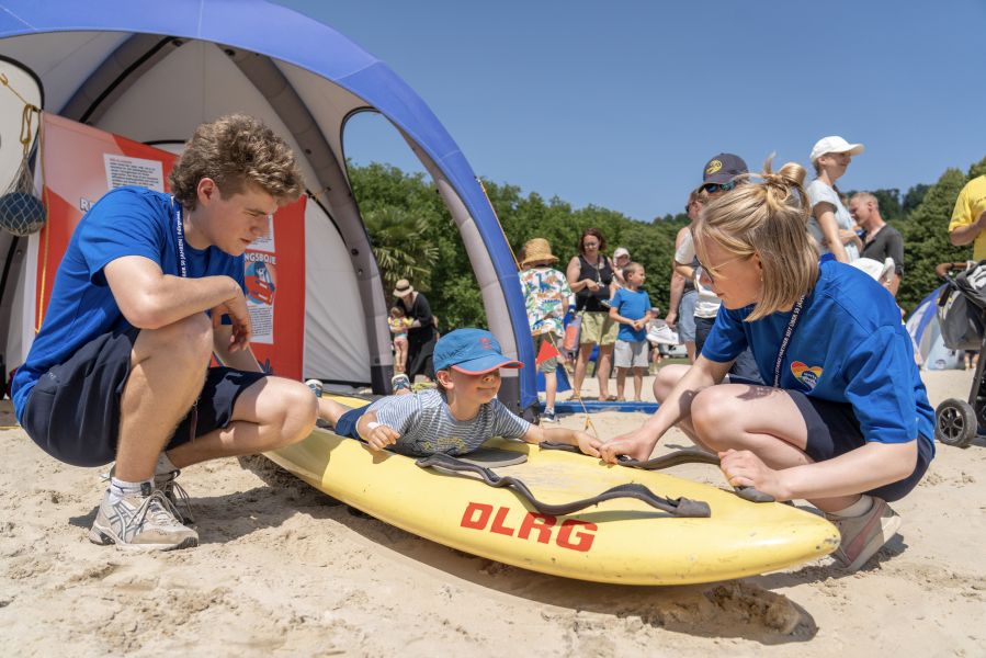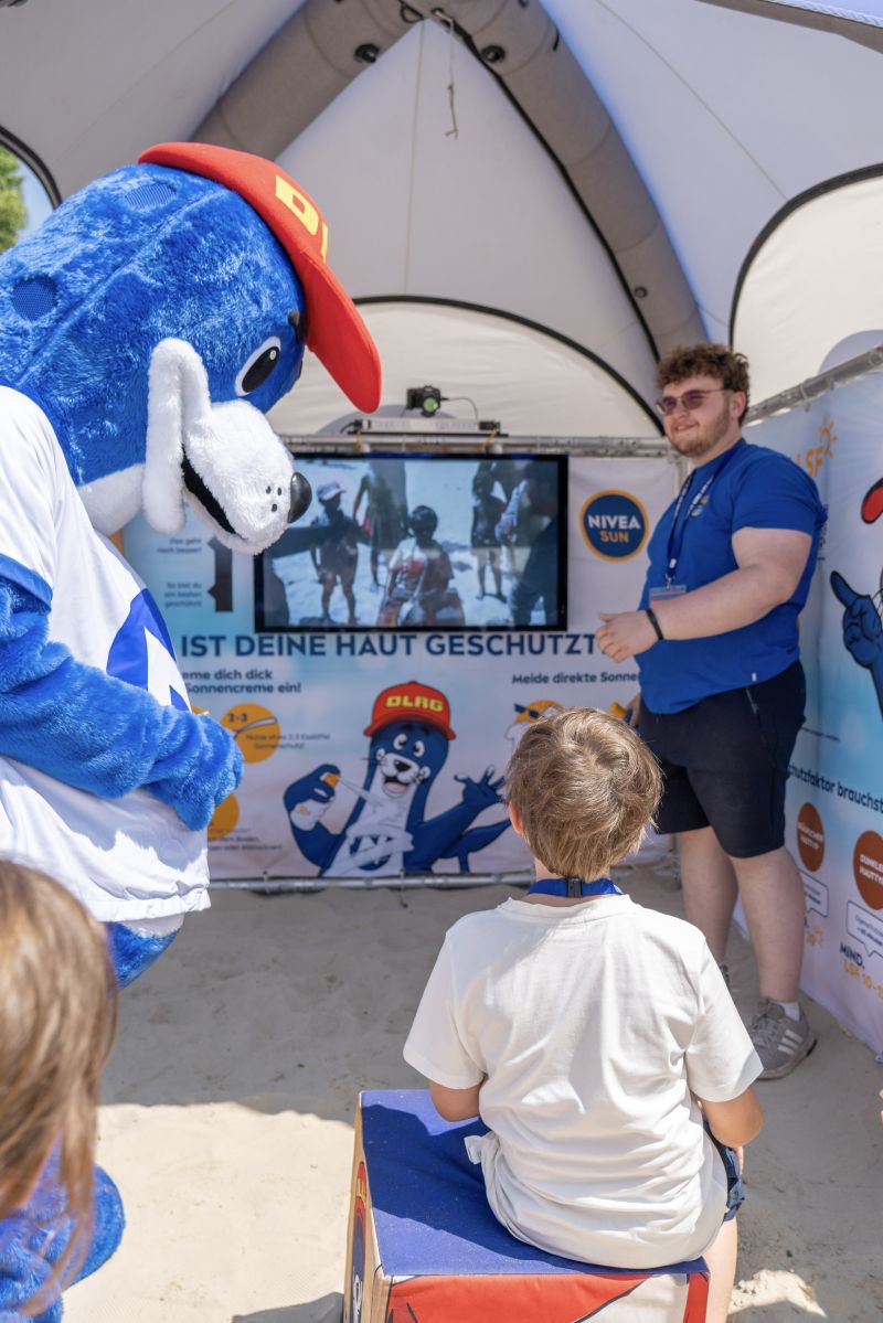 Bei den dreistündigen kostenlosen Strandfesten von DLRG und NIVEA steht der Spaß im Vordergrund: Kleine wie große Strandfestbesucher können sich auf einer Hüpfburg austoben, die Baderegeln puzzeln, Rettungsgeräte ausprobieren oder Erste-Hilfe-Techniken erlernen.